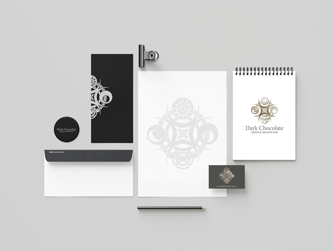 Projekt logo oraz identyfikacja wizualna firmy, obejmująca materiały biurowe oraz system reklamy zewnętrznej.